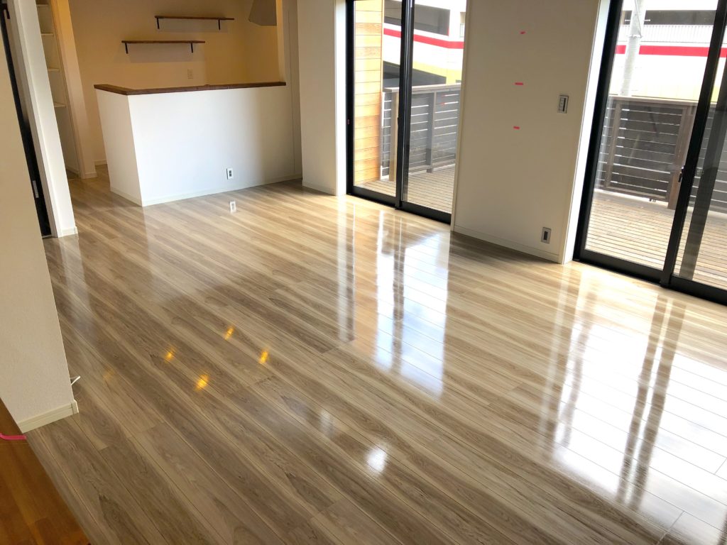 ワックスがけは一生不要。水拭きができ薬品や熱湯にも強く、汚れも落ちる 「メンテナンスフリー」フローリングになります。 小さなお子様やペットのいるご家庭は特にお薦め。 入居後でも施工できます。